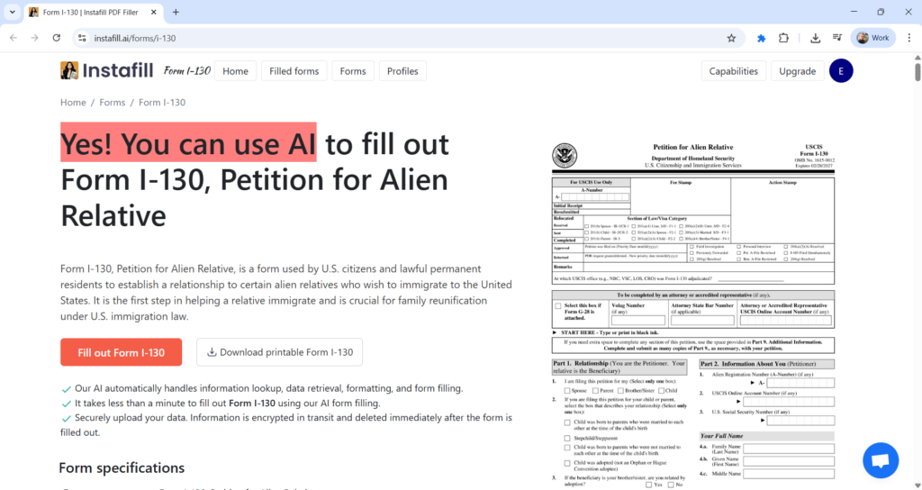 Instafill.ai’s approach to USCIS forms addressed each layer of immigration documentation complexity: