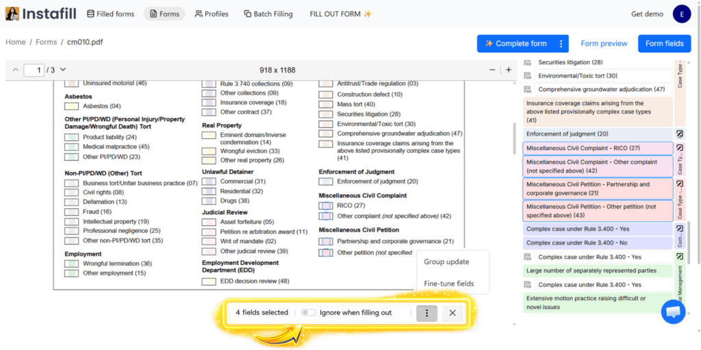 We improve Instafill.ai’s AI and processing algorithms every week – better handling of tables, repeatable sections, cross-page structures, field grouping, and more. If your forms were fine-tuned more than a few weeks ago, they’re likely missing out on these improvements.