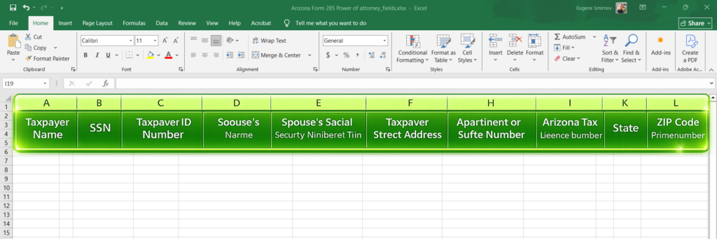 At this point, many users will simply review the spreadsheet before entering any data. That alone is often useful. You can scan the field list, identify what the form expects, and use it as a checklist for the information you still need to collect.
